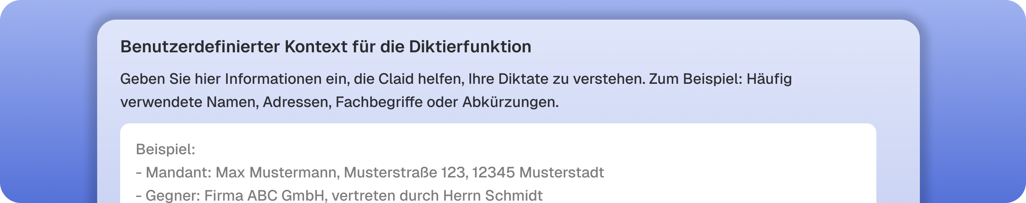 Benutzerdefinierter Kontext für die Diktierfunktion