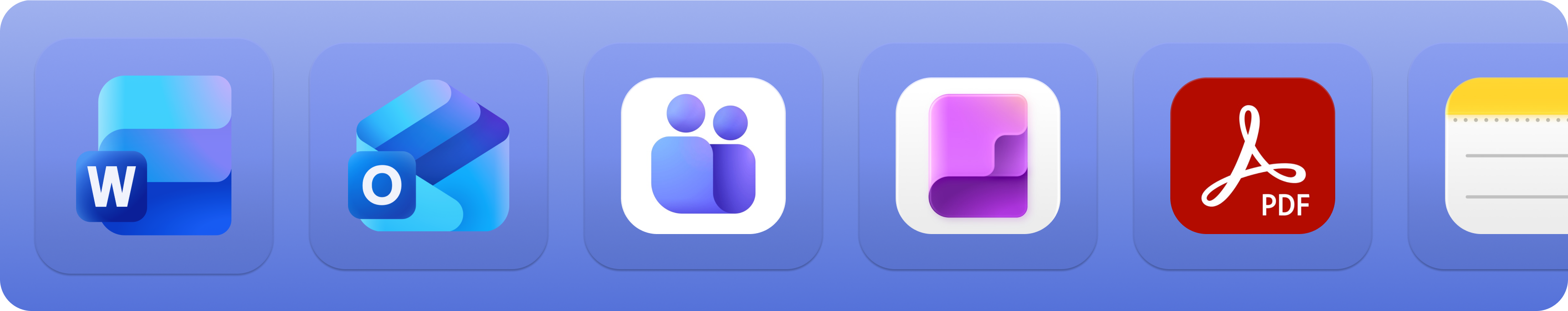 App-Icons: Word, Outlook, Teams, OneNote, PDF, Notizen